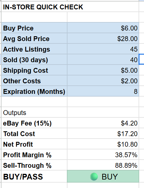 Sell-Through System Decision Spreadsheet for eBay Sellers (BUY / PASS Logic)